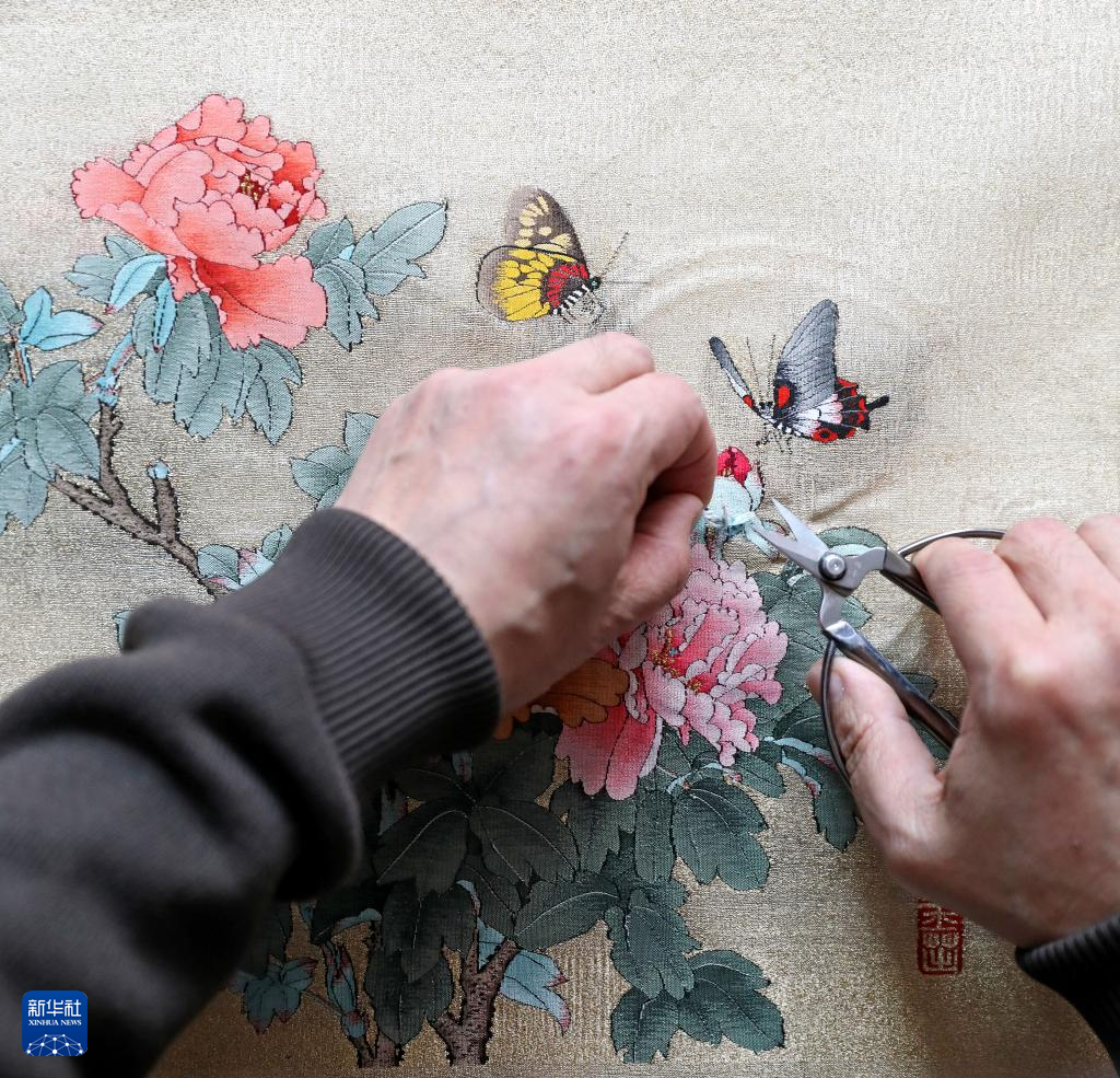 辽宁省营口市55岁的申涛是营口非遗项目申氏缂丝的传承人,师从国家级非遗缂丝传承人王金山。20多年来申涛一直从事古代缂丝文物复制、缂丝新产品开发和缂丝技艺研究。他以独特的匠心将古老的技法与现代艺术结合,创造出符合现代审美的缂丝作品。