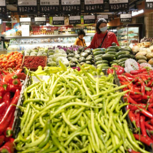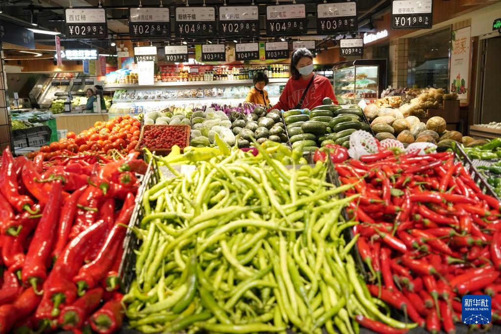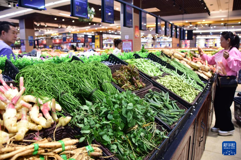 4月11日,顾客在湖南省怀化市通道侗族自治县一家超市选购蔬菜。