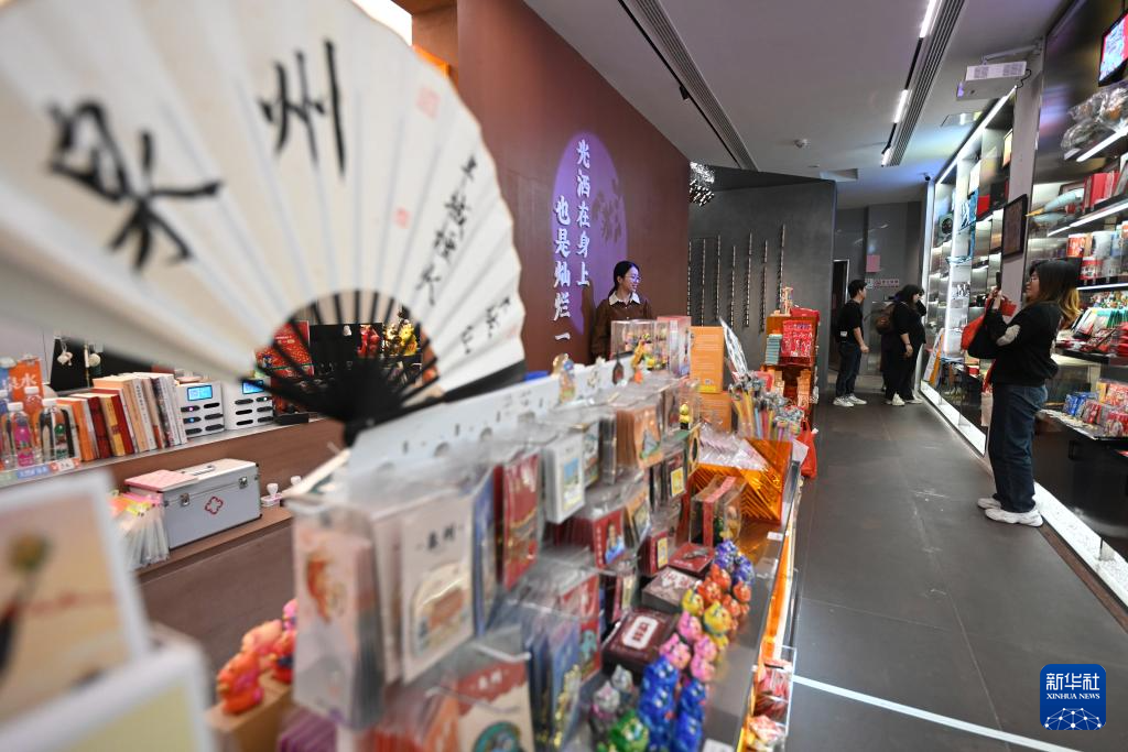 4月10日,游客在泉州中山路一家文创店内拍照、购物。