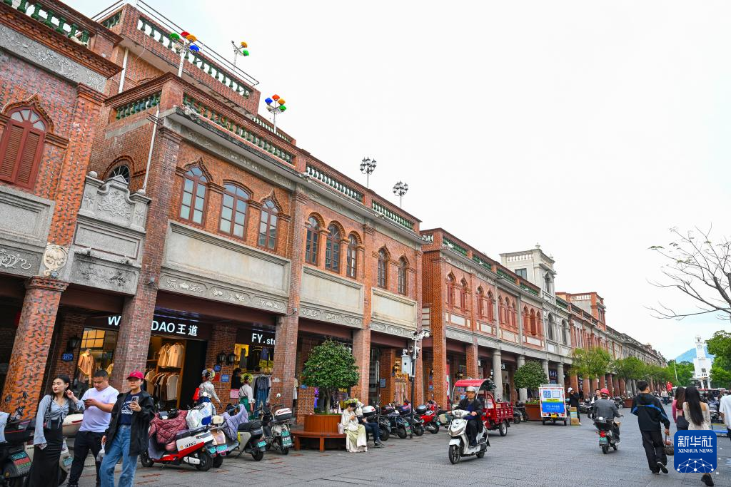 4月10日,游客在泉州中山路游览。