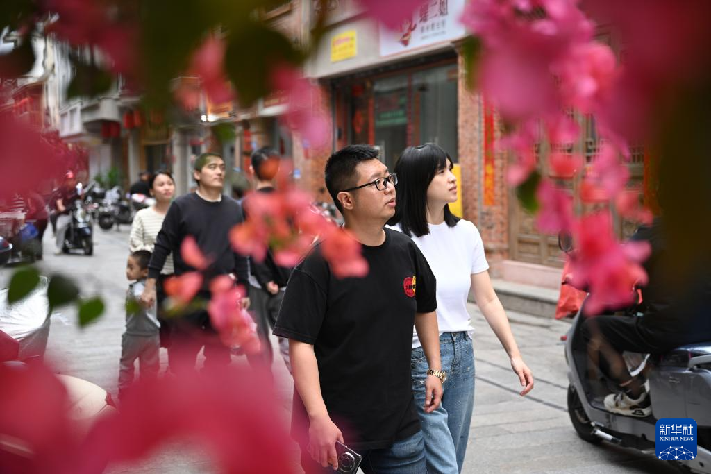 4月10日,人们在泉州中山路游览。