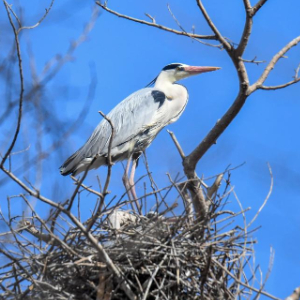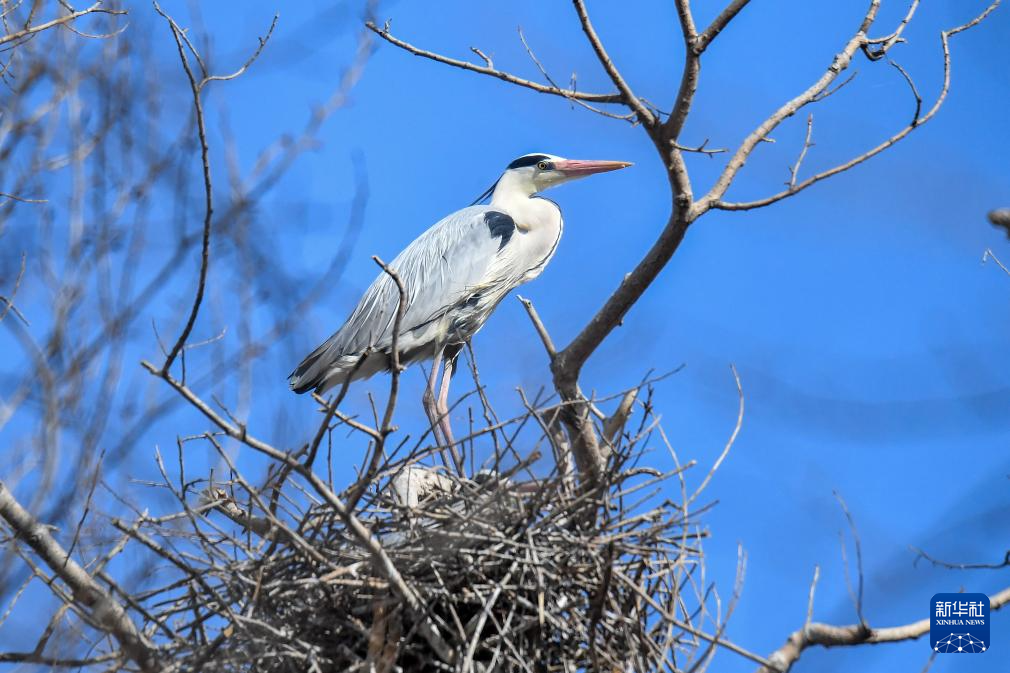 4月9日,在镇赉县莫莫格蒙古族乡卧卜村,苍鹭在树林里栖息。