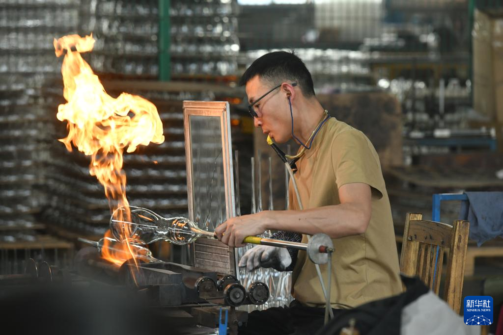4月11日,在位于河间市的河北明尚德玻璃科技股份有限公司,工作人员在整理工艺玻璃制品。