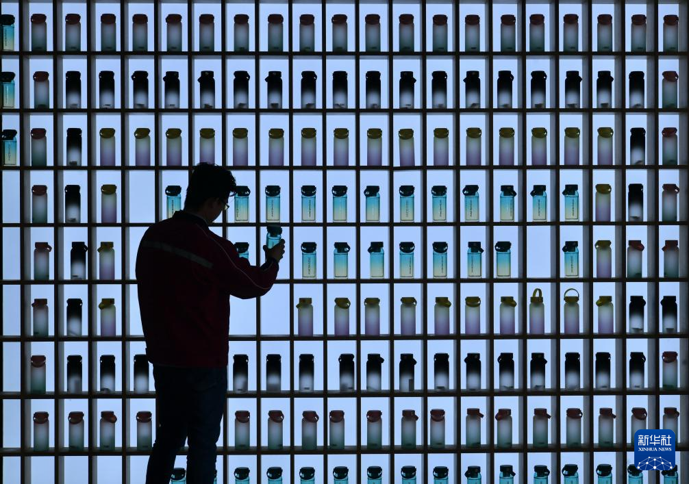 4月11日,在位于河间市的河北明尚德玻璃科技股份有限公司,顾客在选购工艺玻璃制品。