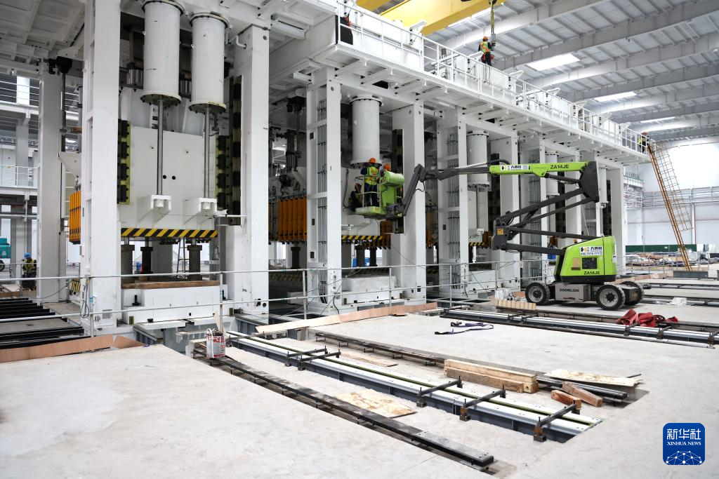 4月12日,在肥西县在建的新能源汽车产业园,工人在智能新能源乘用车项目冲焊联合厂房施工。