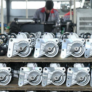 4月11日,河北省河间市一家汽车配件再制造企业的工人在展厅内整理产品。