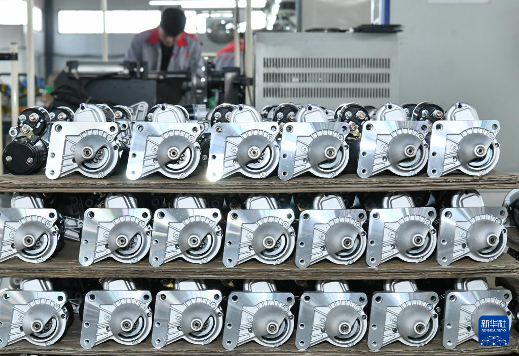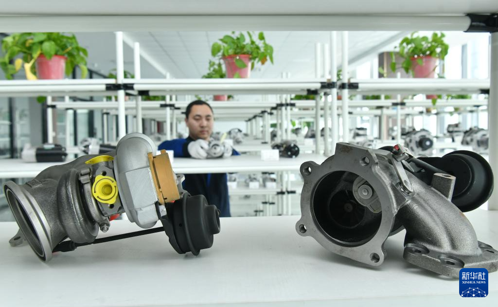 4月11日,河北省河间市一家汽车配件再制造企业的工人在半成品库检查产品质量。