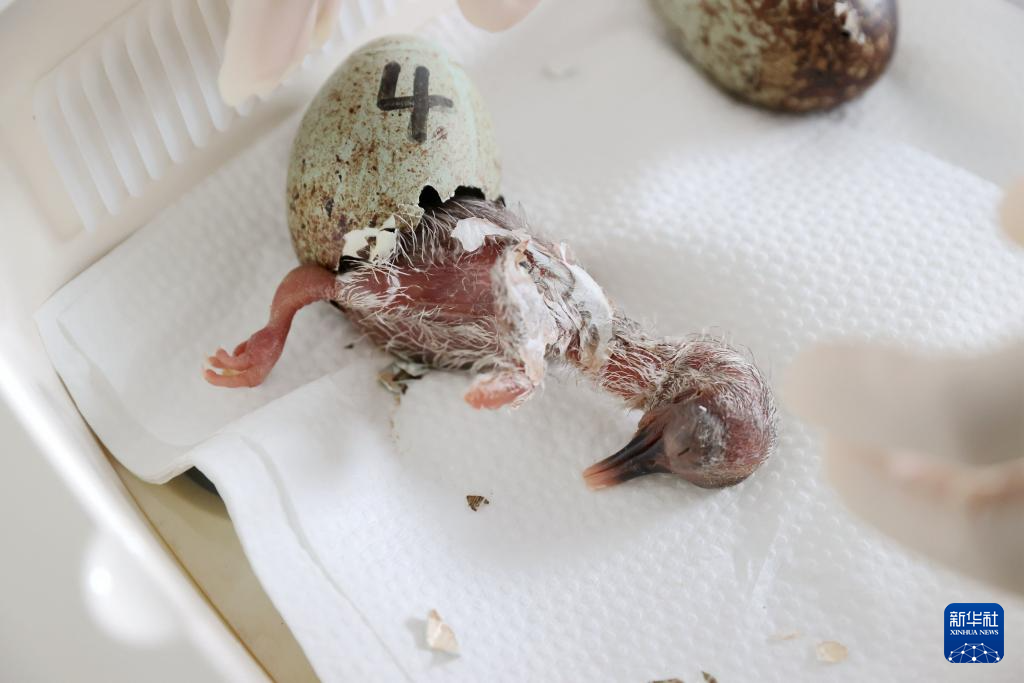 当日,浙江省湖州市德清县下渚湖朱鹮繁育研究基地今年人工孵化的首只朱鹮宝宝出壳诞生,这也是浙江今年首只人工孵化的朱鹮。