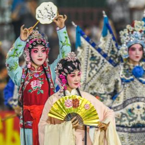 4月13日,贵州大学的留学生们在中场休息时进行歌舞表演。