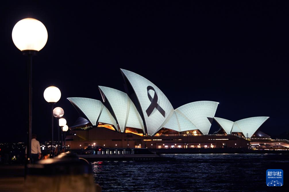这是4月15日晚拍摄的点亮“黑丝带”的澳大利亚悉尼歌剧院。