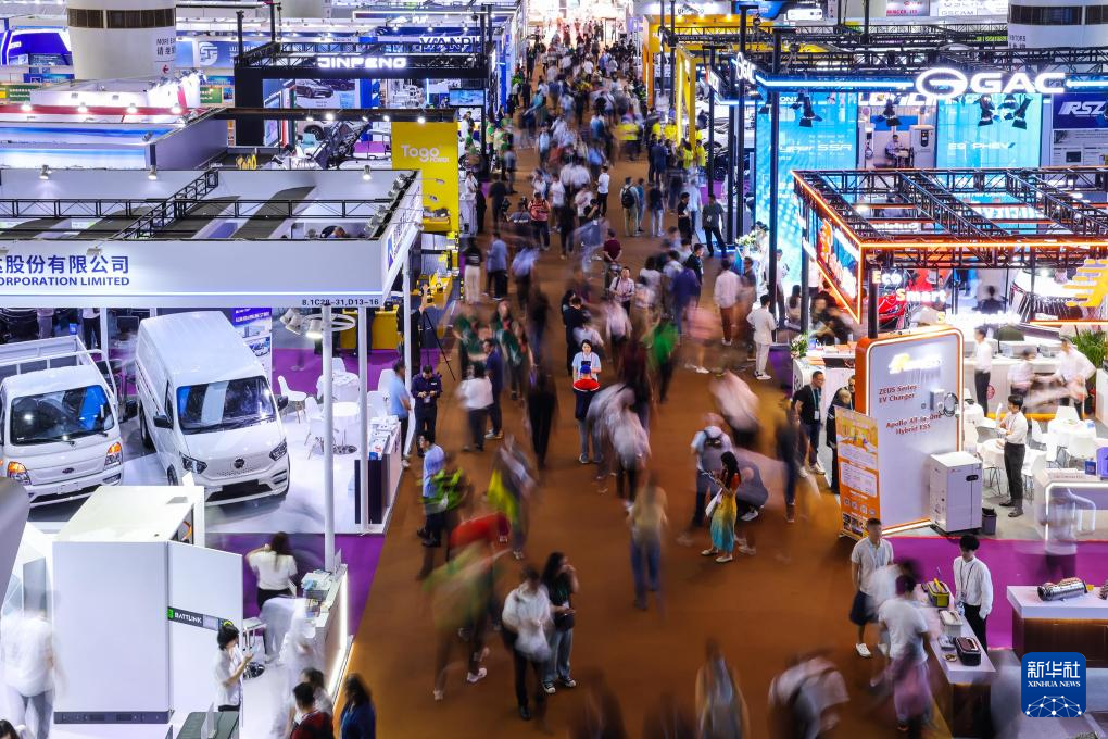 这是第135届广交会新能源汽车展区(4月15日摄)。