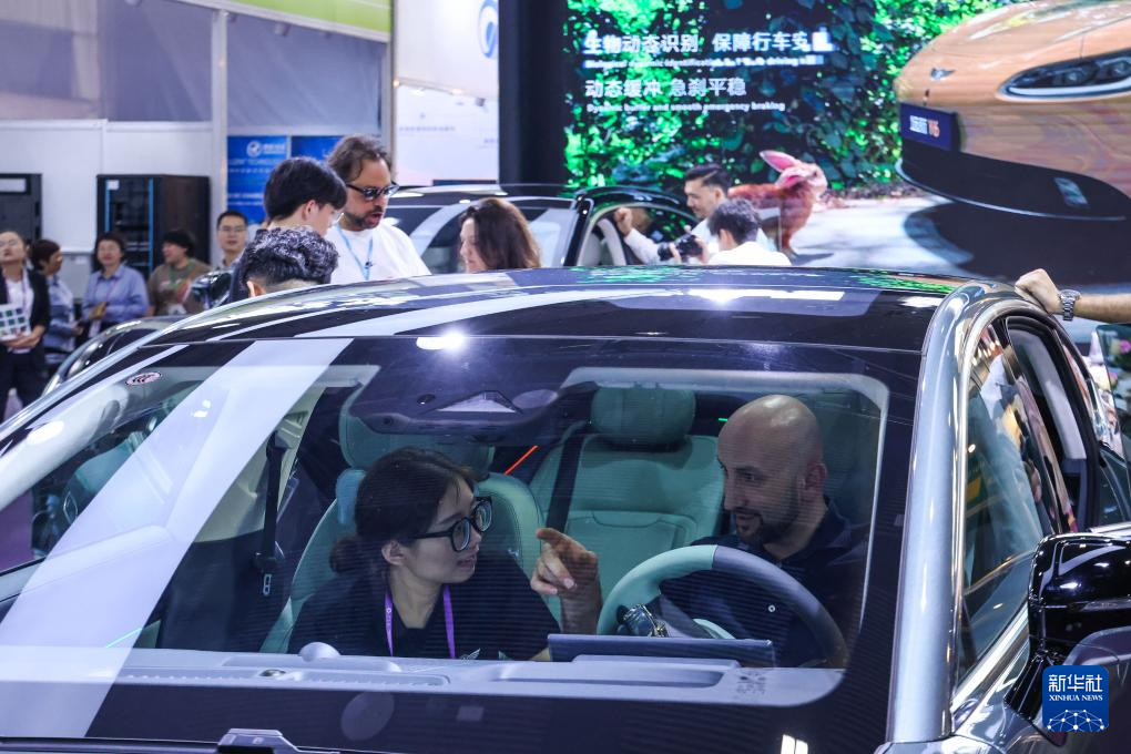4月15日,采购商在广交会新能源汽车展区了解中国新能源汽车产品。