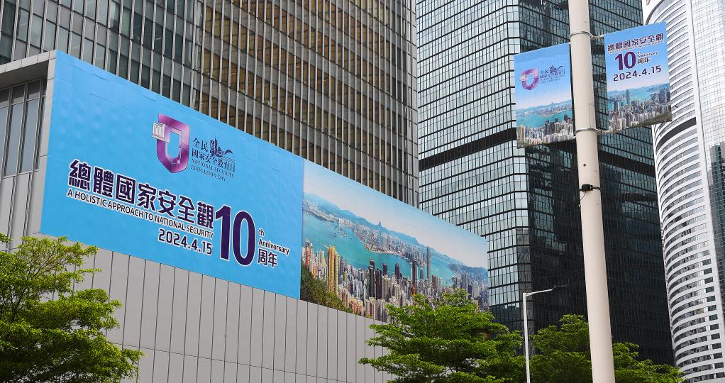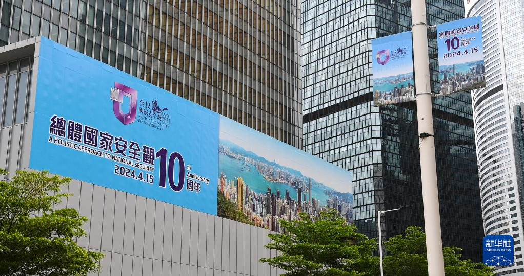 这是4月15日在香港街头拍摄的全民国家安全教育日宣传海报。
