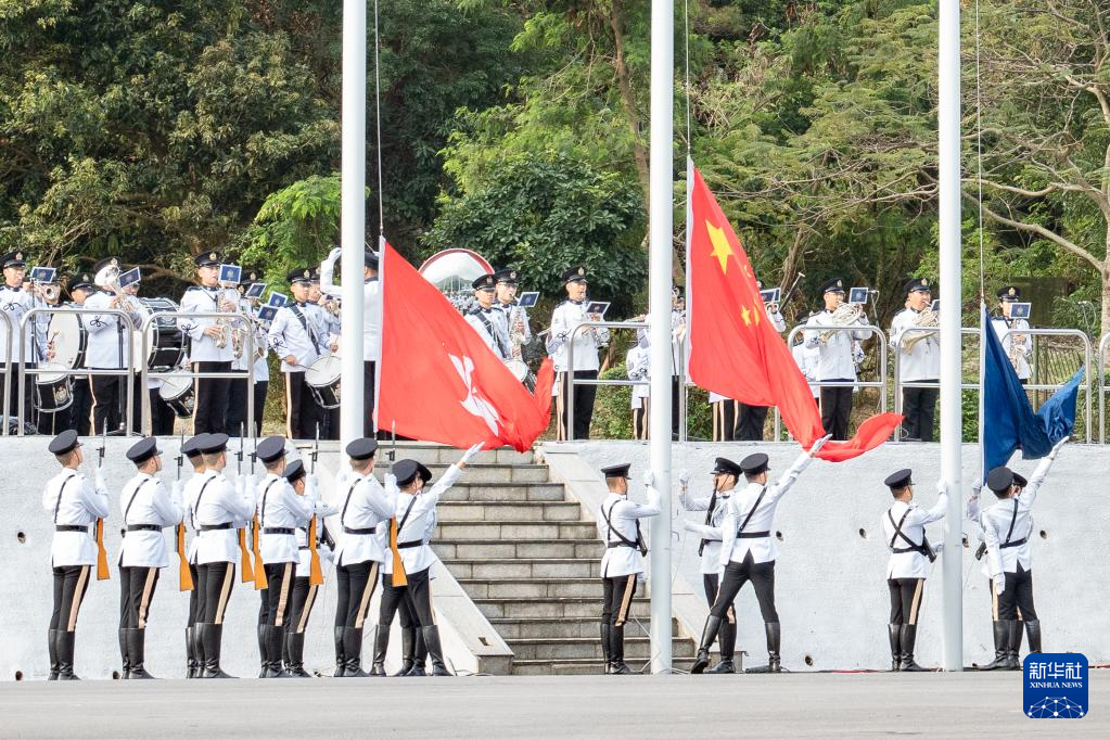这是4月15日在香港警察学院拍摄的全民国家安全教育日升旗仪式。