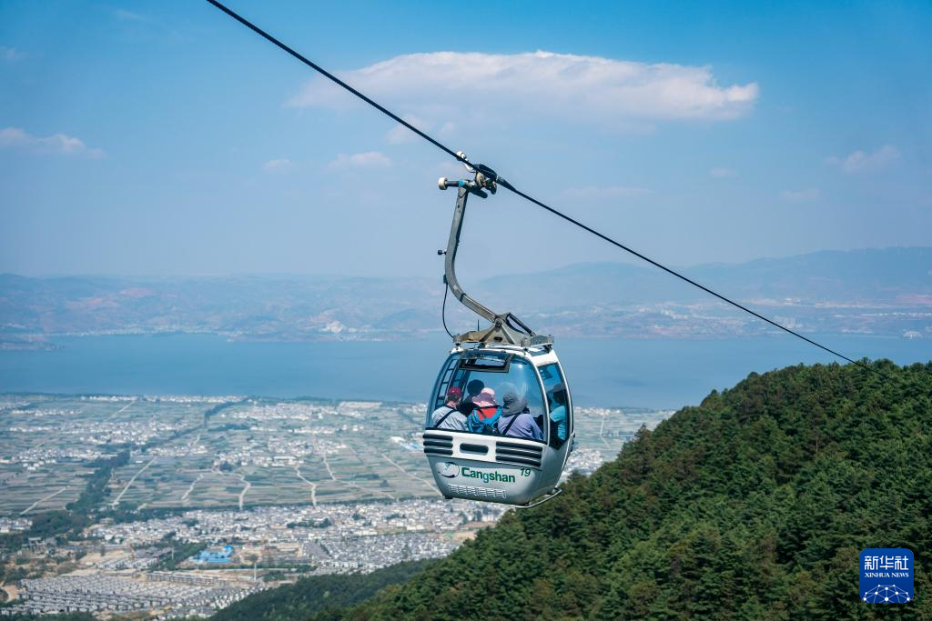 游客在大理市乘坐苍山索道(4月13日摄)。