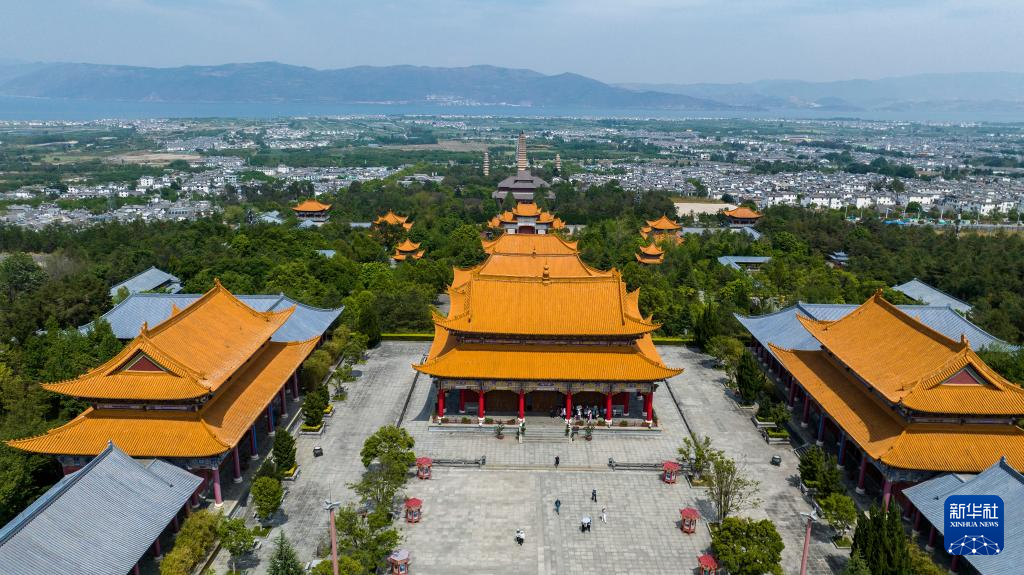 4月14日拍摄的大理市崇圣寺三塔文化旅游区(无人机照片)。