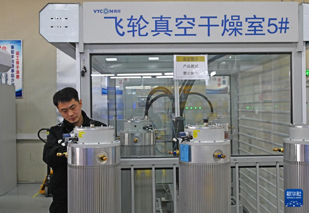 3月21日,在沈阳微控飞轮技术股份有限公司,工人在车间组装飞轮。
