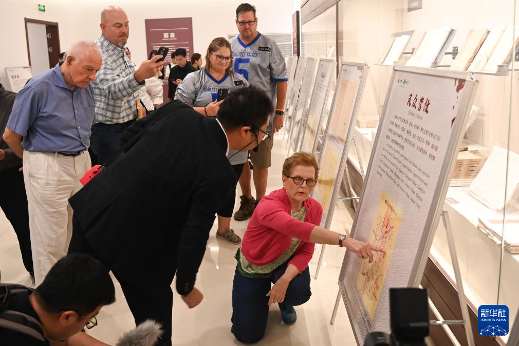 在衢州江山市档案馆,获救美国军人后代参观“杜立特行动”江山大救援专题展览(4月16日摄)。
