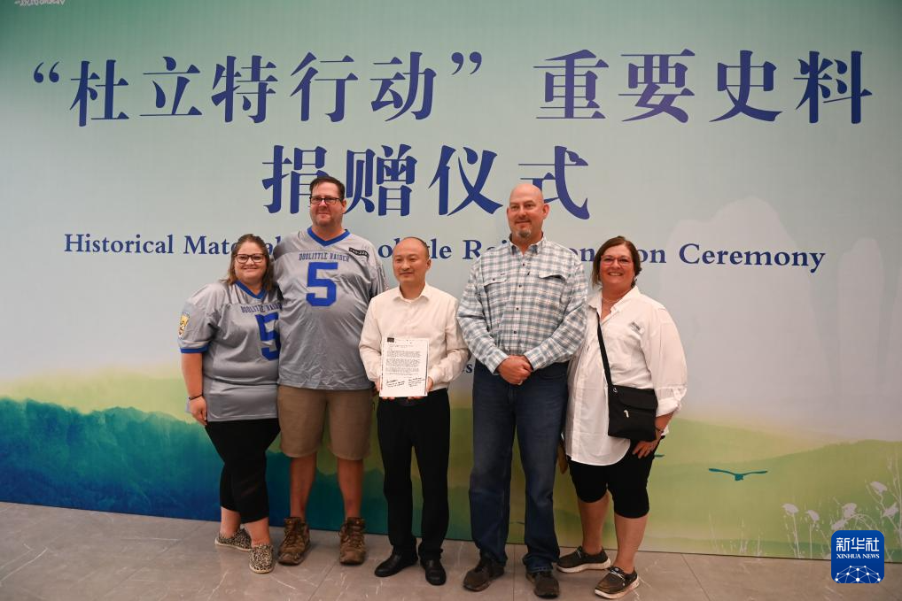 在衢州江山市档案馆,获救美国军人后代出席“杜立特行动”重要史料捐赠仪式(4月16日摄)。