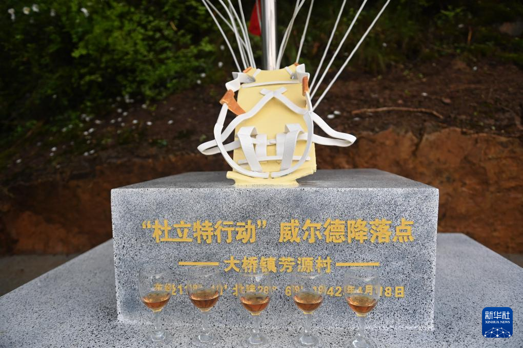 4月16日在衢州江山市大桥镇芳源村拍摄的“杜立特行动”威尔德降落点标识。1942年,“杜立特行动”5号机飞行员罗斯·威尔德曾在村民毛光孝等的救援下安全转移。