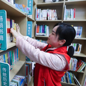 4月17日,在环渚街道玉堂桥慧心书屋,志愿者在整理儿童读物。该书屋作为环渚街道总工会的“小候鸟”悦读点基地,为辖区新居民子女提供阅读场地。
