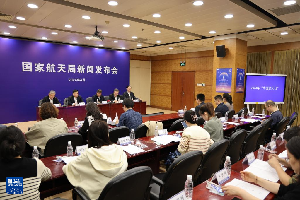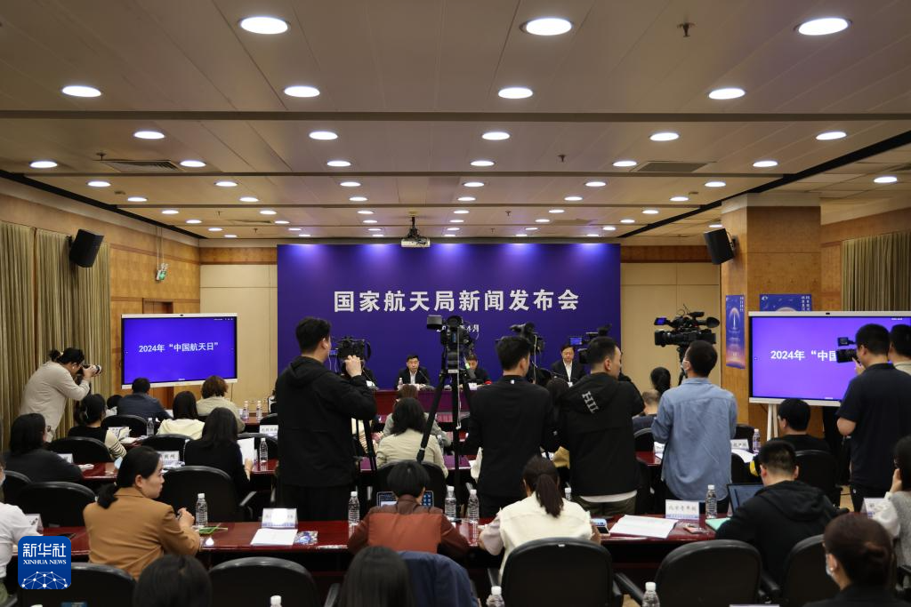 4月17日拍摄的2024年中国航天日新闻发布会现场。