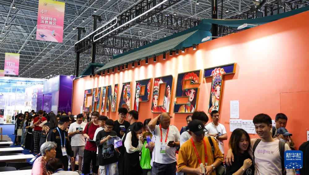 4月18日,观众在第四届消博会主会场排队领取“消博护照”。
