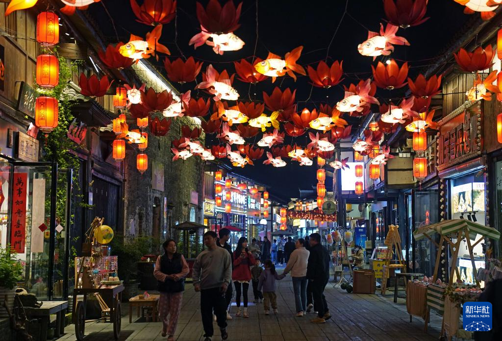 行走在文昌里的古街,千姿百态的彩灯与错落有致的古建筑交相辉映,“临川四梦”戏剧造型光影映射墙面,古街两边地方特色美食、传统手工艺、非遗文化展示等业态相互依存,处处都能感受传统与现代的完美结合。文昌里正以独特的戏曲文化吸引着八方来客。