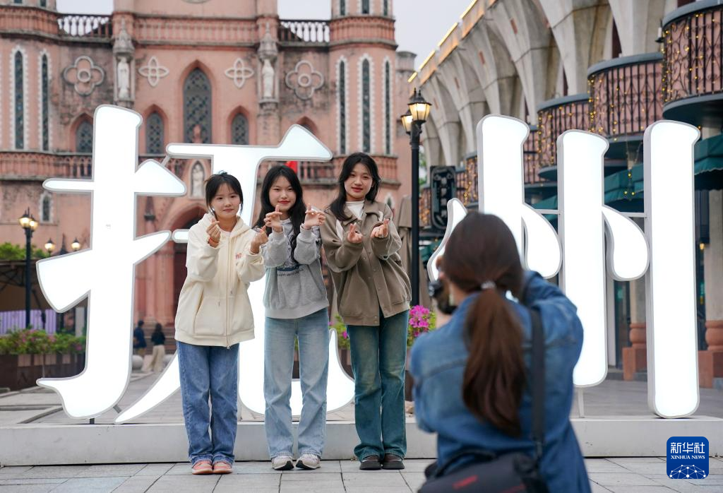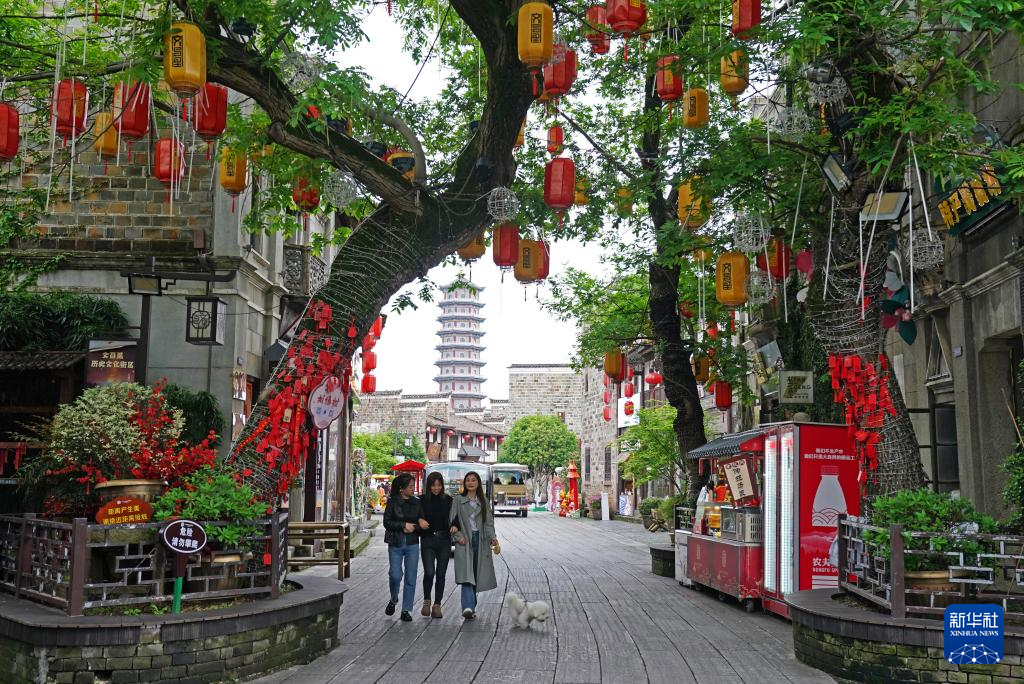 游客在抚州市文昌里历史文化街区合影留念(4月9日摄)。