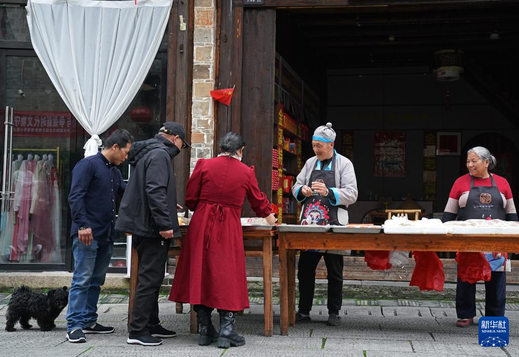 在抚州市文昌里历史文化街区,游客选购当地特色小吃藕丝糖(4月9日摄)。
