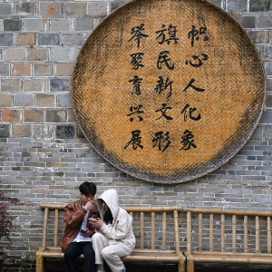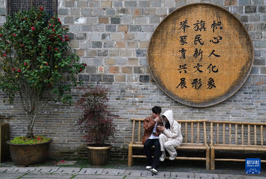游客在抚州市文昌里历史文化街区休憩(4月9日摄)。