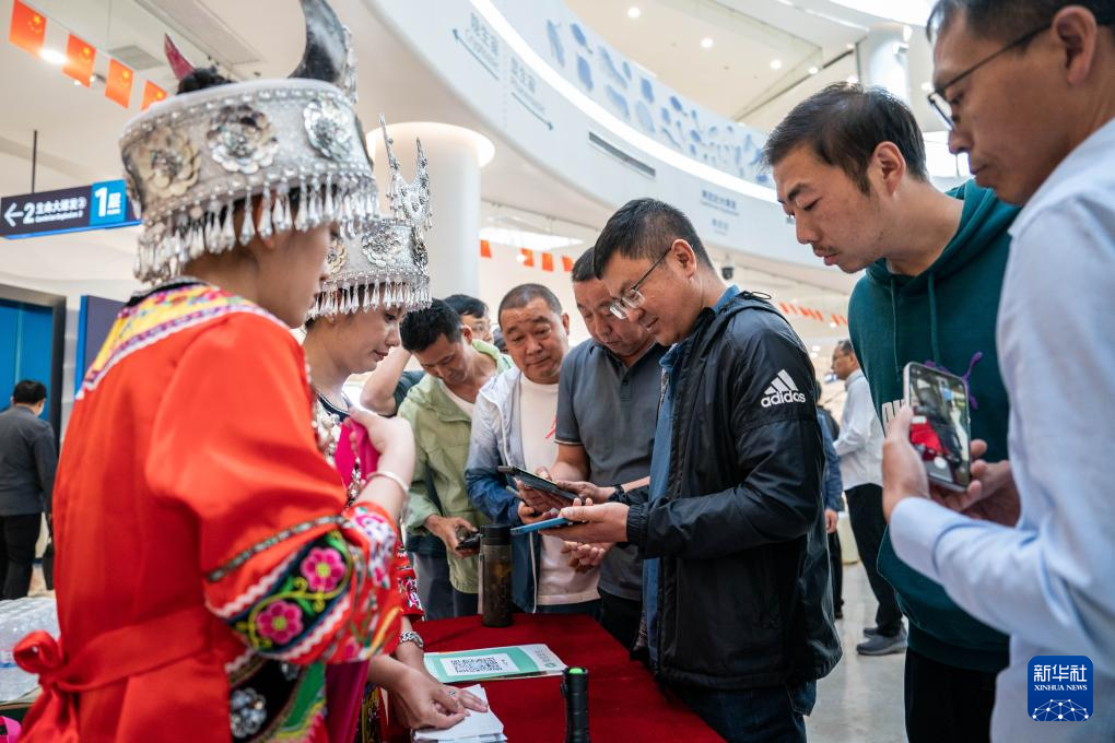 4月18日,人们在澄江化石地世界自然遗产博物馆购买《世界自然遗产——澄江化石地》特种邮票。