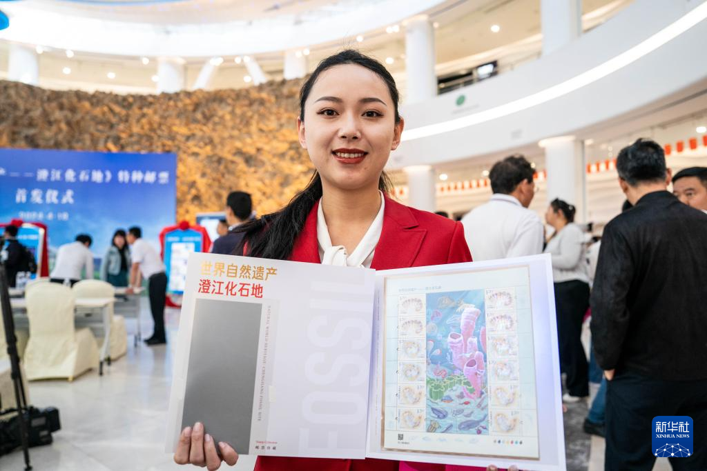 当日,《世界自然遗产——澄江化石地》特种邮票发行仪式在位于云南玉溪的澄江化石地世界自然遗产博物馆举行。此次发行的邮票1套3枚,邮票图案名称为中华微网虫化石、环饰蠕虫与吸盘古宿虫共生化石、延长抚仙湖虫化石。全套邮票面值3.60元,计划发行数量588万套。