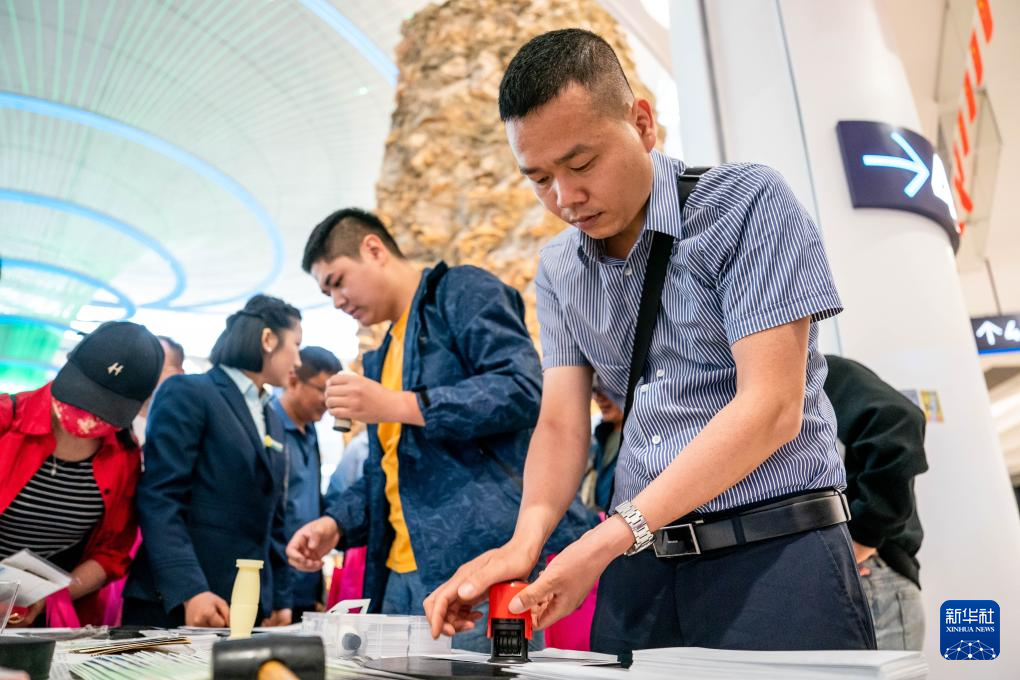 4月18日,集邮爱好者给购买的特种邮票盖日戳。
