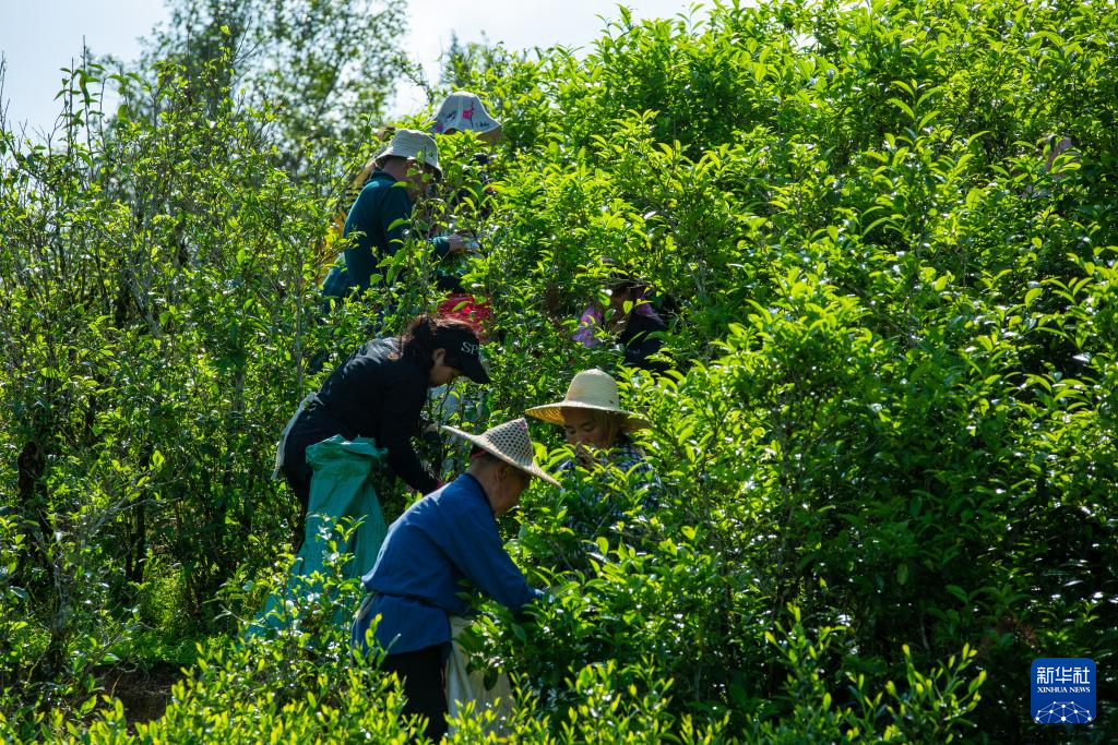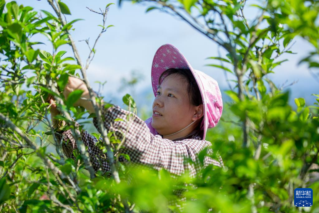 4月18日,茶农在武夷山佛国岩生态茶园采摘茶叶。