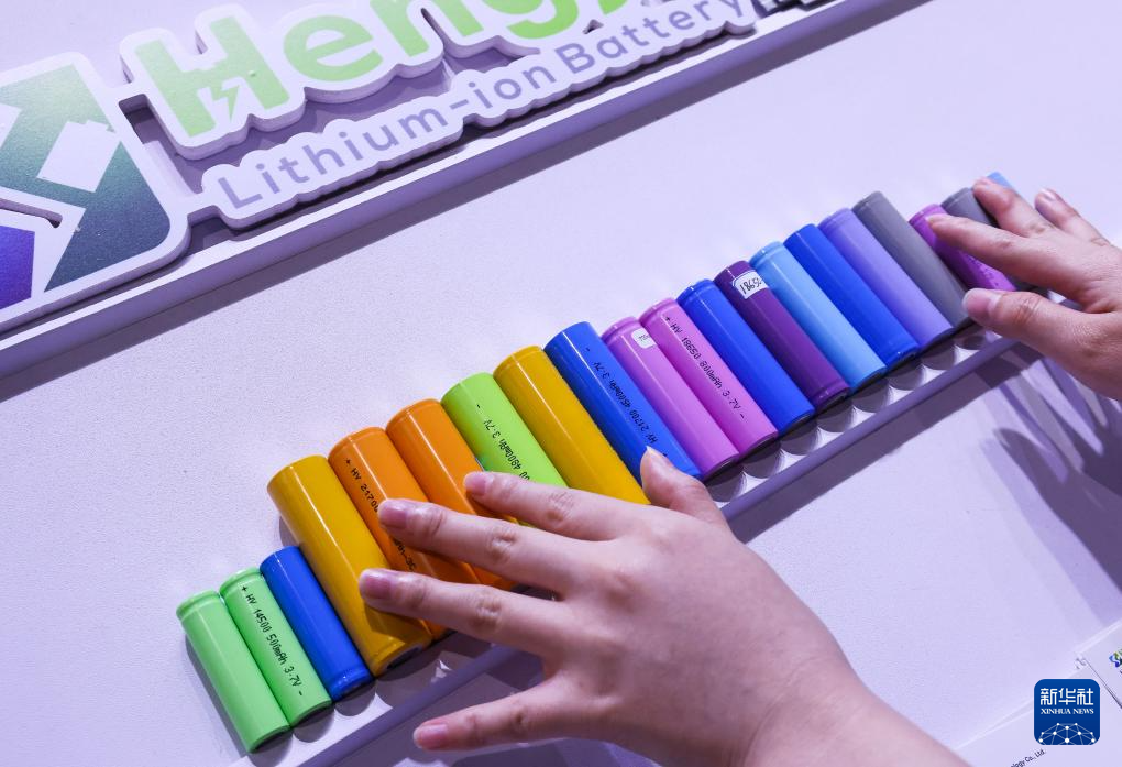 这是一家企业在第135届广交会上展出的锂电池产品(4月15日摄)。