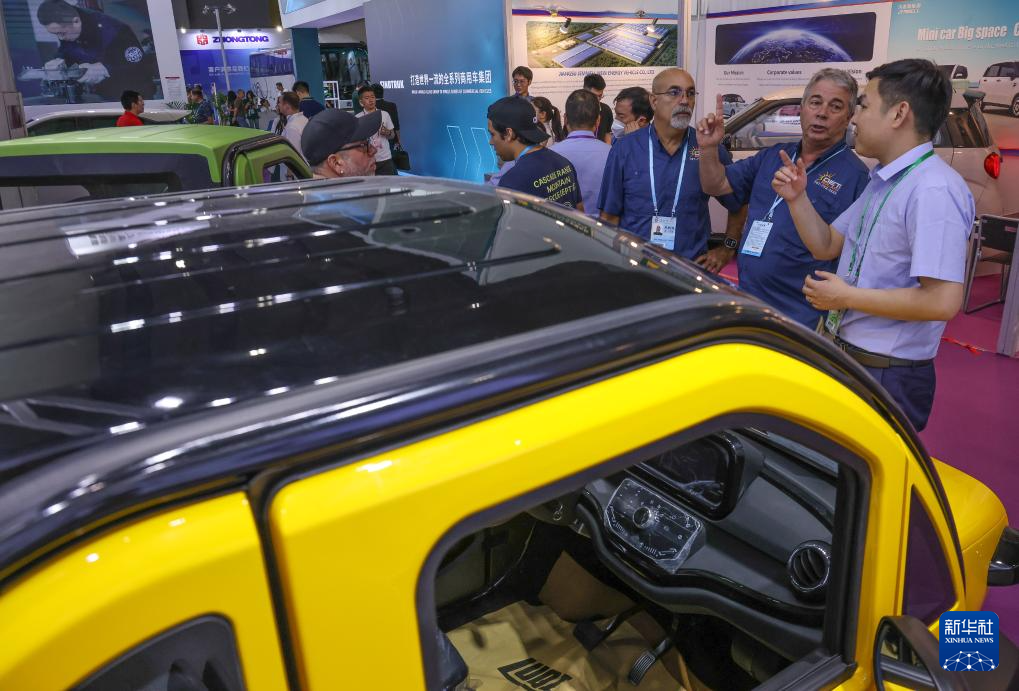 4月15日,采购商在第135届广交会上了解新能源汽车。