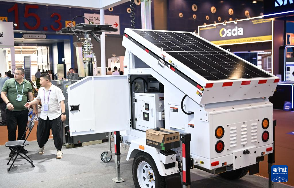 这是一家企业在第135届广交会上展出的户外太阳能监测车(4月15日摄)。