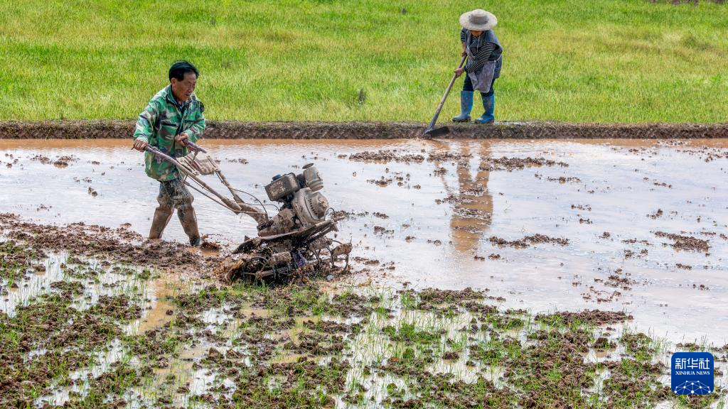 4月19日,村民在贵州省丹寨县兴仁镇台辰村翻耕农田。