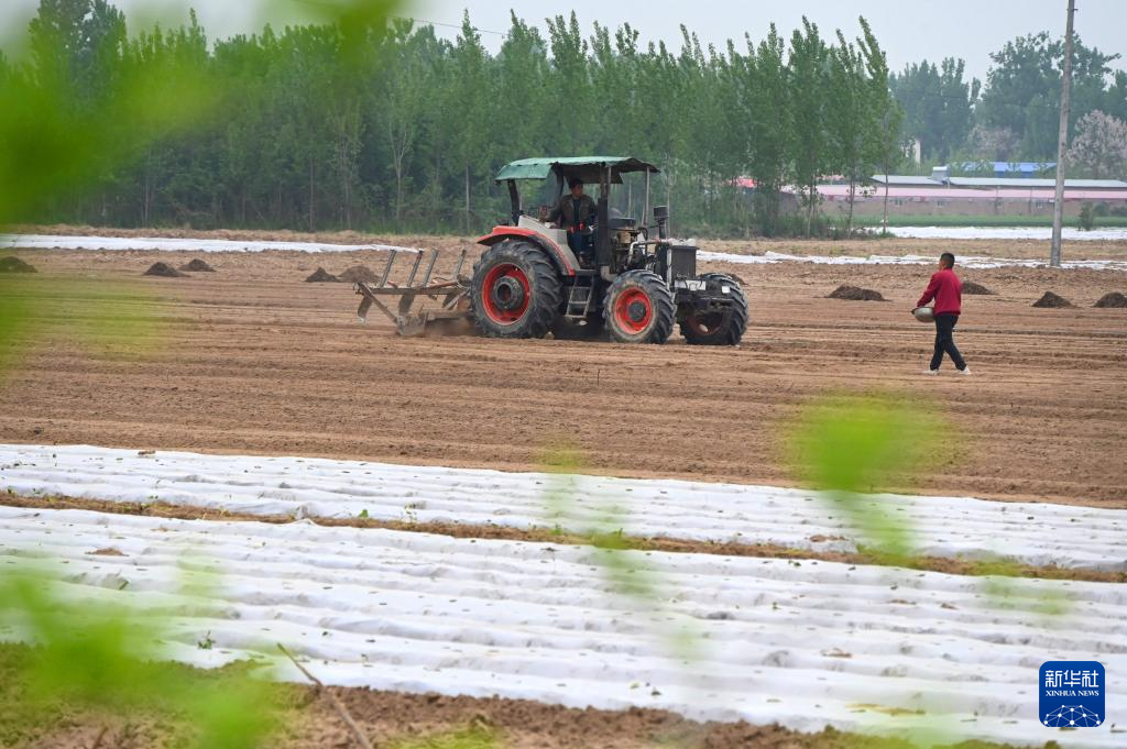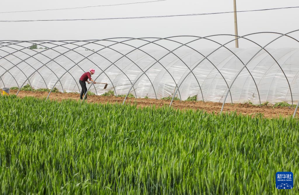 4月19日,在山东省滕州市大坞镇马楼村,村民在田间劳作。