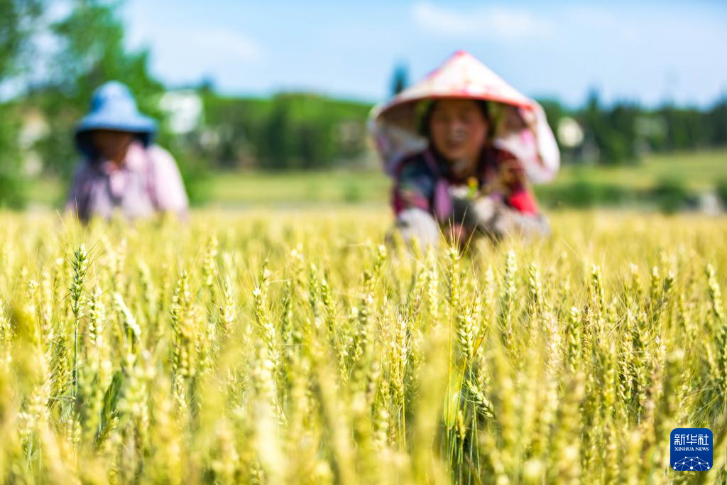 4月19日,农民在贵州省安顺市西秀区双堡镇海子村管护小麦。