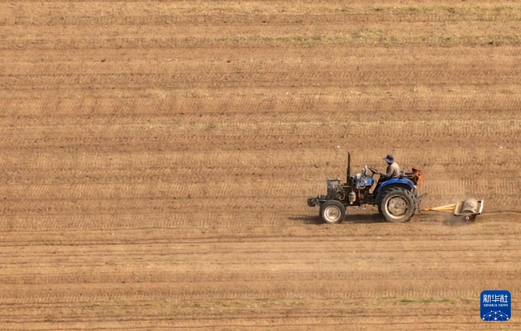 4月19日,在四川省达州市高新区金垭镇龙坪村田间,农民驾驶农机翻耕土地播种大豆。