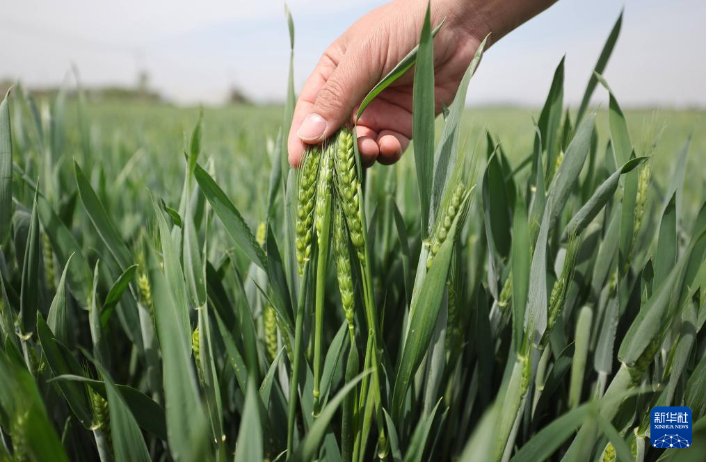 4月19日,在山东省临沂市沂南县苏村镇司马店子村,农民在查看小麦长势。