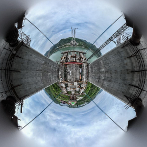 4月19日,西十高铁汉江特大桥首对斜拉索成功挂设(无人机全景照片)。