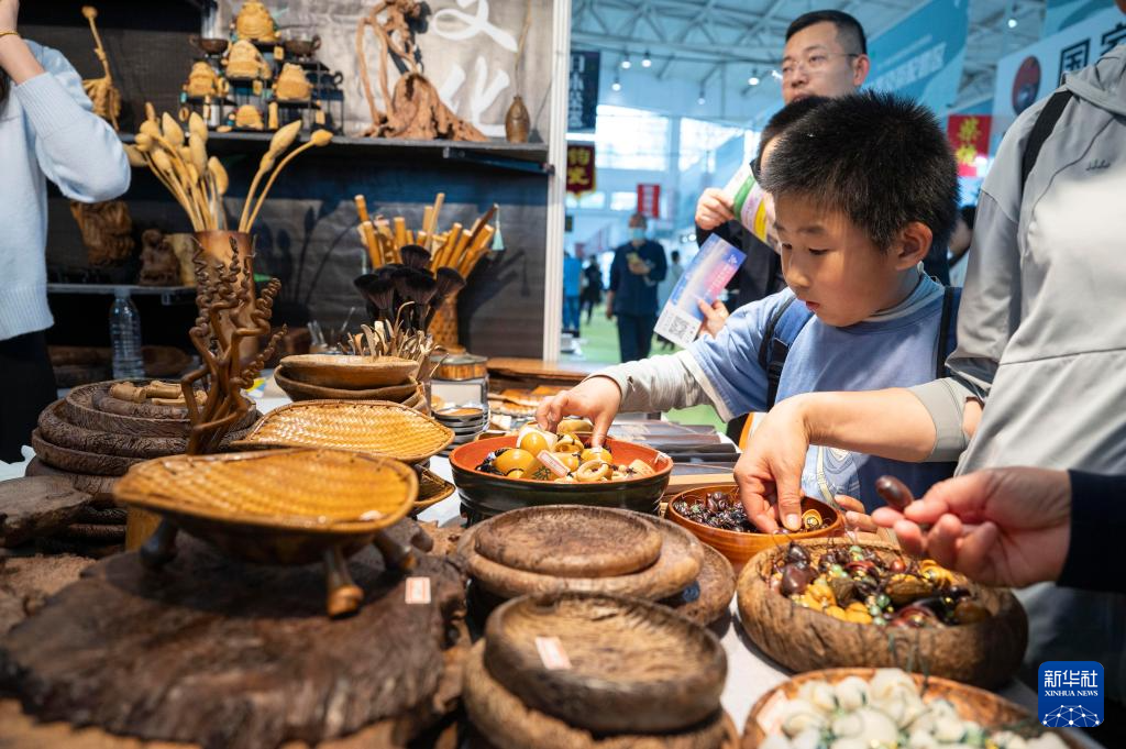 4月19日,在北京茶博会上,一名小观众挑选趣味茶宠。
