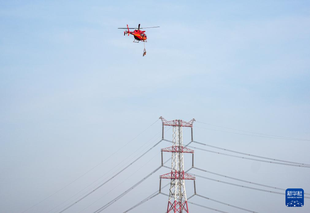 当日,在位于安徽省淮南市潘集区闸口村的淮河边,一架轻型直升机盘旋在250多米高的特高压铁塔上方,作业人员身着专用屏蔽服,通过直升机机外吊挂设备抵达塔顶作业位置,对线塔中存在的缺陷进行消除,确保迎峰度夏期间华东能源通道稳定安全。据了解,这是国网安徽电力首次采用“直升机绞车吊椅法”对1000千伏淮盱线淮河大跨越输电工程开展带电检修作业。1000千伏淮盱线西起安徽淮南、东至江苏盱眙,全长196.66千米,是皖电东送重要输电通道。