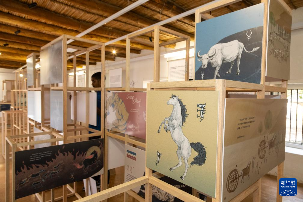 这是4月19日在南非开普敦拍摄的“龟甲牛骨上的精灵:甲骨文艺术展”中文日主题活动现场。