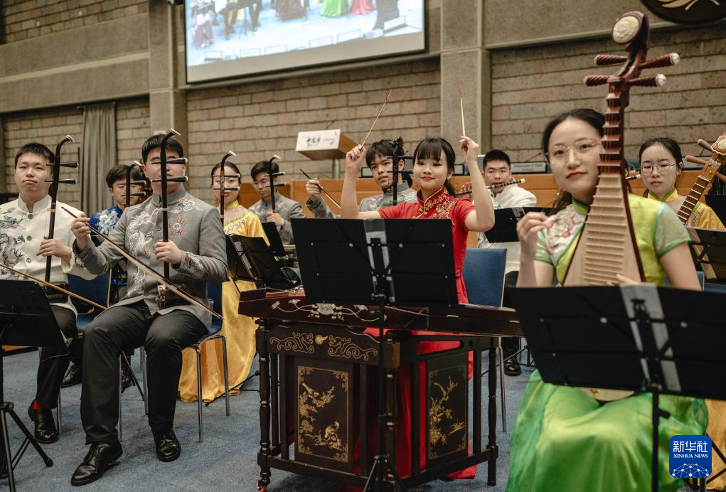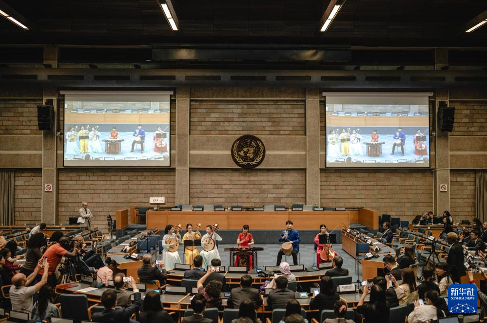 4月19日,在位于肯尼亚内罗毕的联合国环境规划署总部,南京大学民乐团在中文日庆祝活动现场进行中国民乐表演。