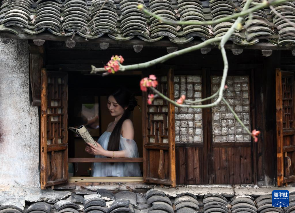 4月11日,游客在浙江嘉兴乌镇古民居里倚窗阅读。