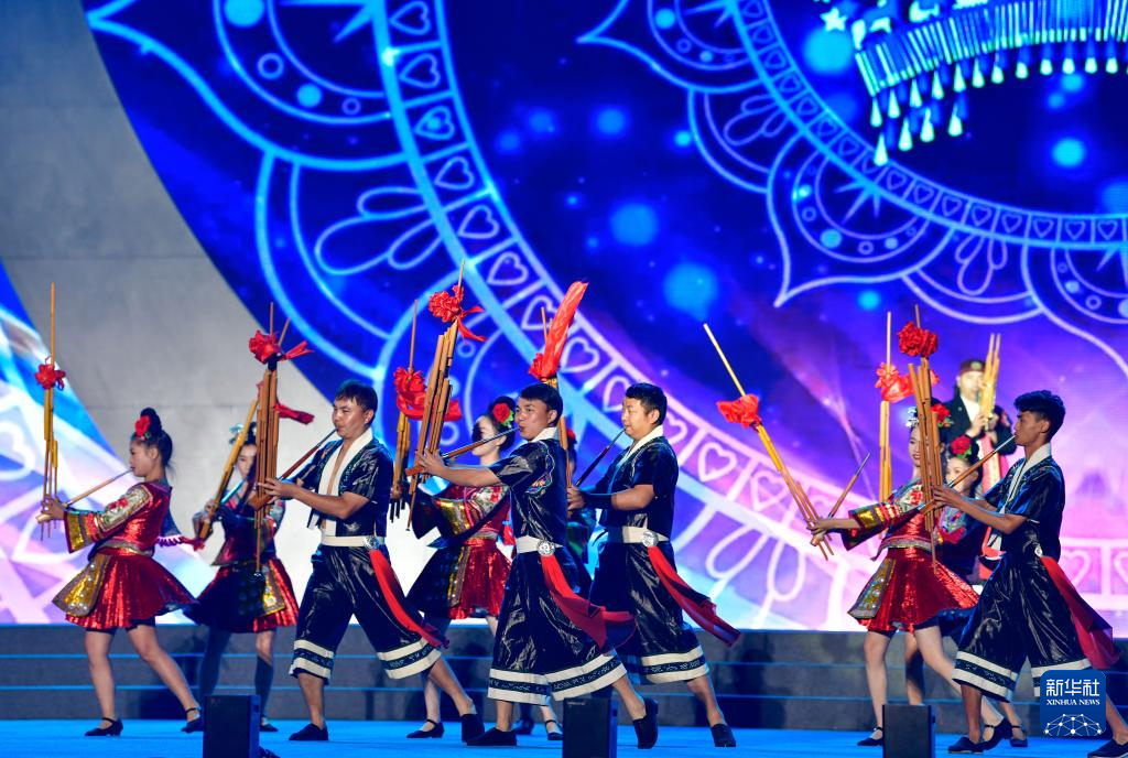 4月20日晚,演员在2024年贵州台江苗族姊妹节开幕式上吹奏芦笙。